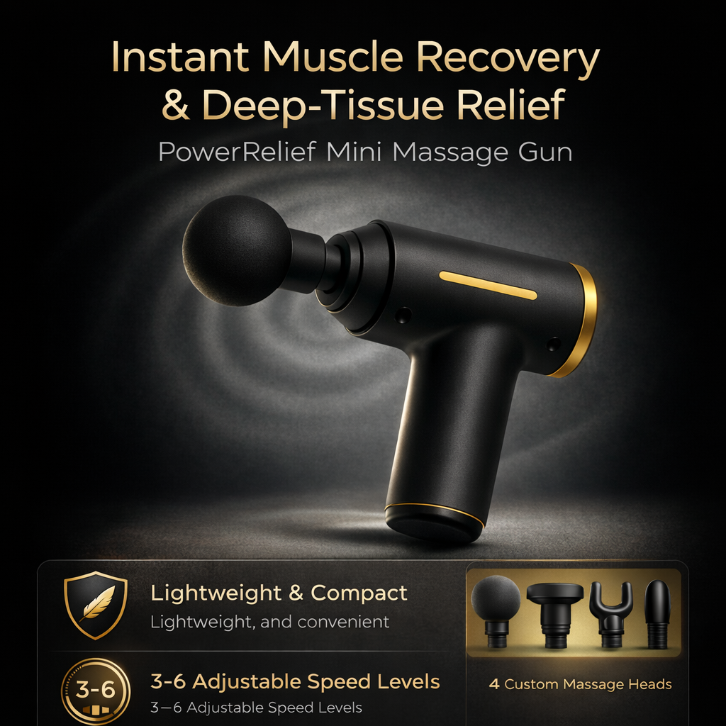Experience instant muscle recovery and deep-tissue relief with the PowerRelief Mini Massage Gun, your perfect companion for workouts, travel, and everyday stress relief. Designed for portability without sacrificing power, this sleek device fits easily into your bag and delivers serious results wherever you are.