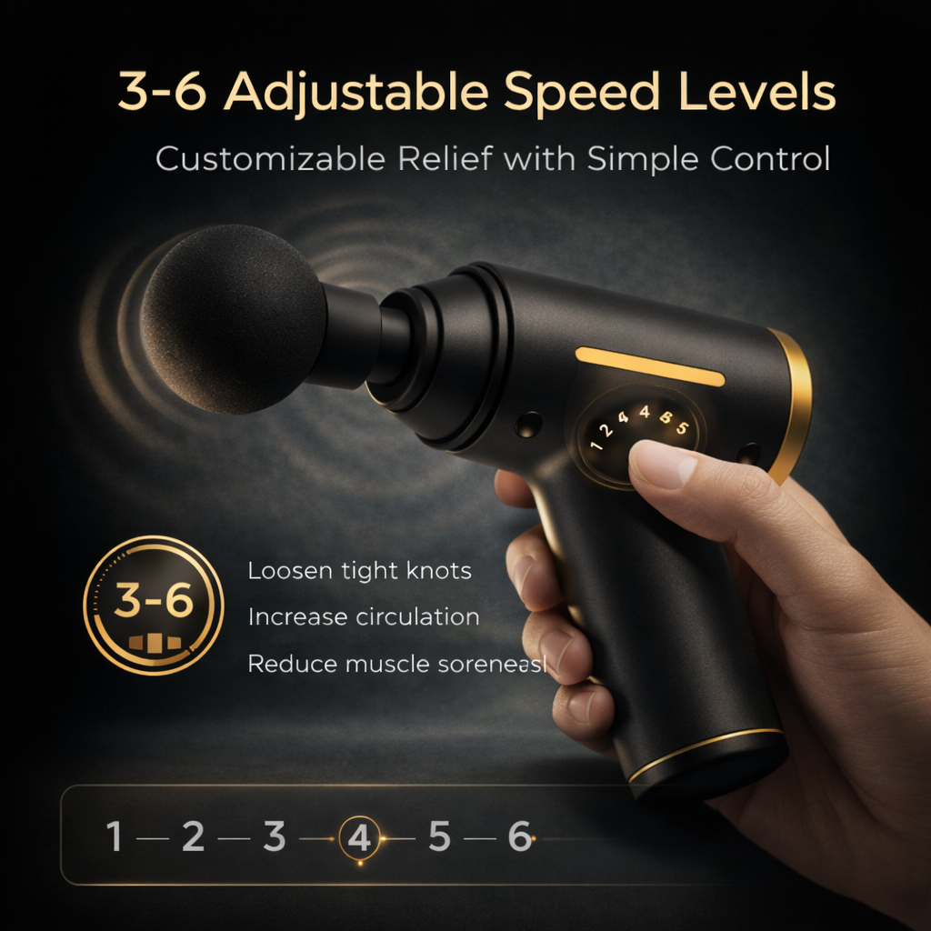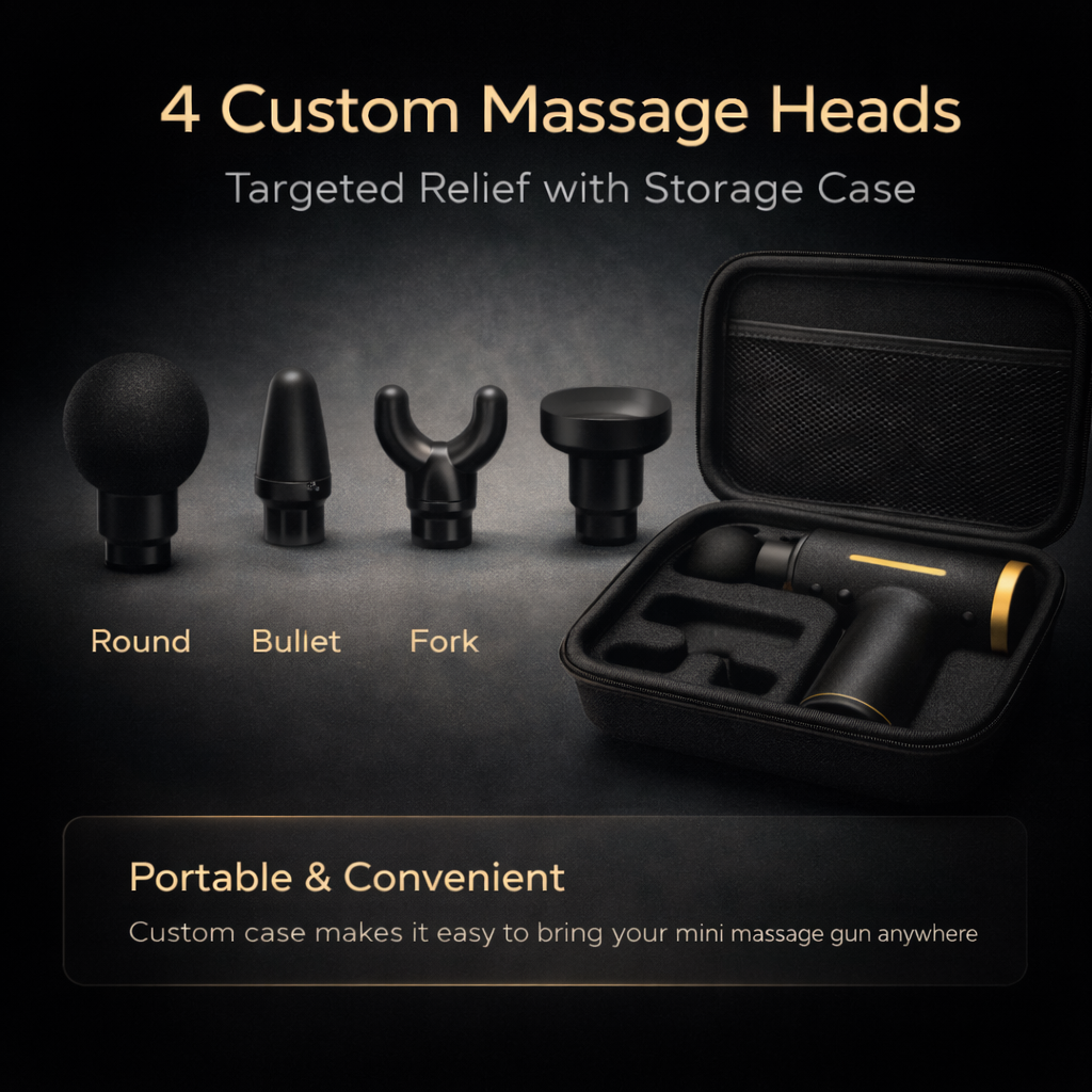 - Mini Massage gun: Lightweight, compact design with ergonomic grip for on-the-go recovery